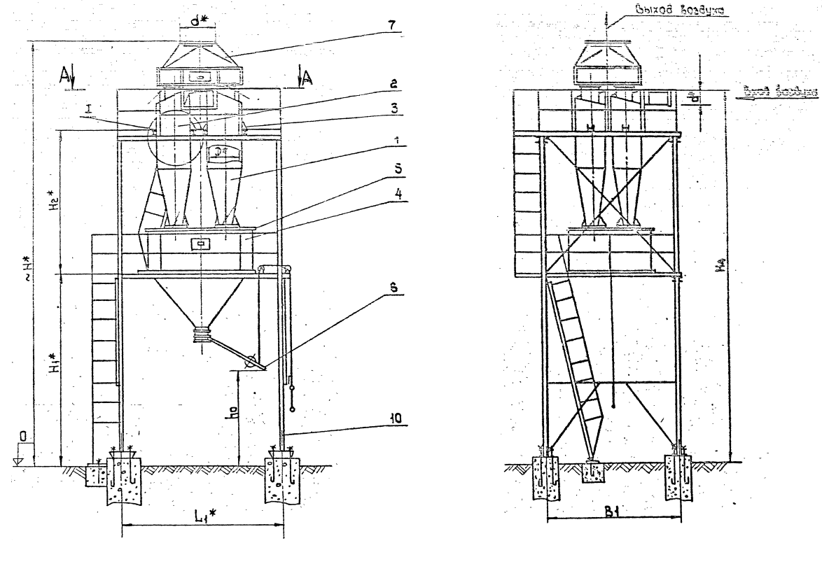 • возможна сборка из 4-10 циклонов данной модели на несколько газовых потоков.