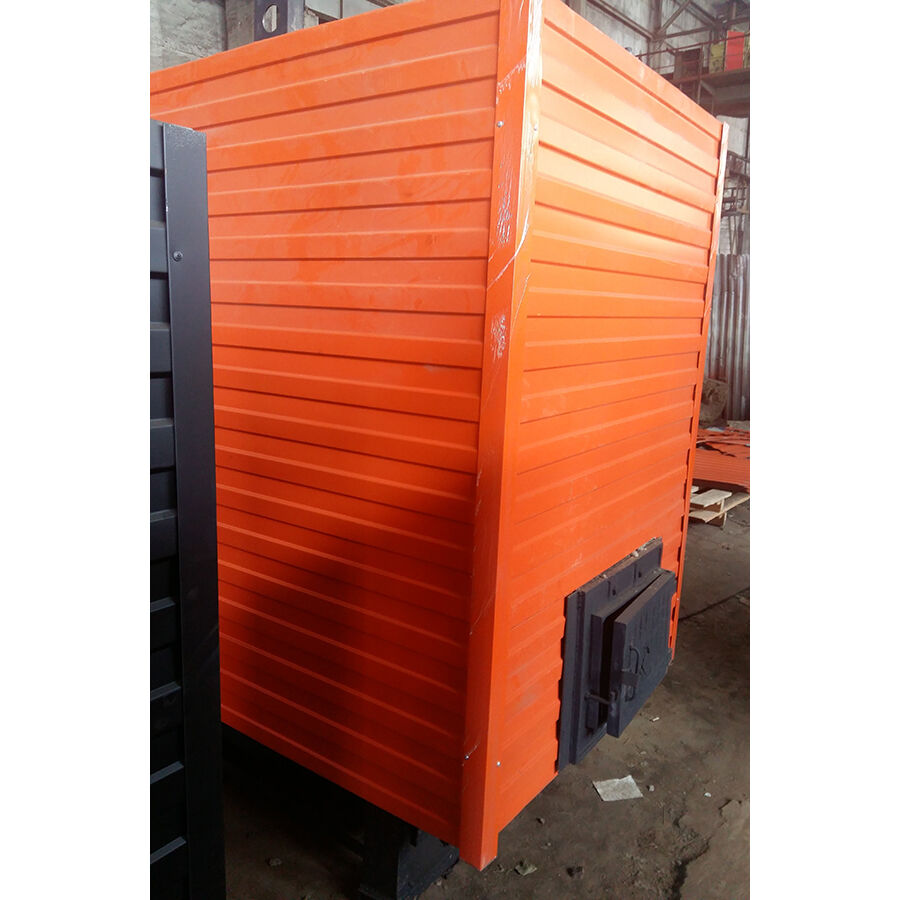 Мощная – 150 кВт (1,5 МВт) – «начинка» котла КВр заключена в окрашенный металлический корпус. Покрытие (краска) защищает от коррозии и механических повреждений. Газоплотные и негазоплотные части котельного блока, чтобы сократить теплопотери, обшиты теплоизоляционным материалом: плитами ПТЭ и войлоком.